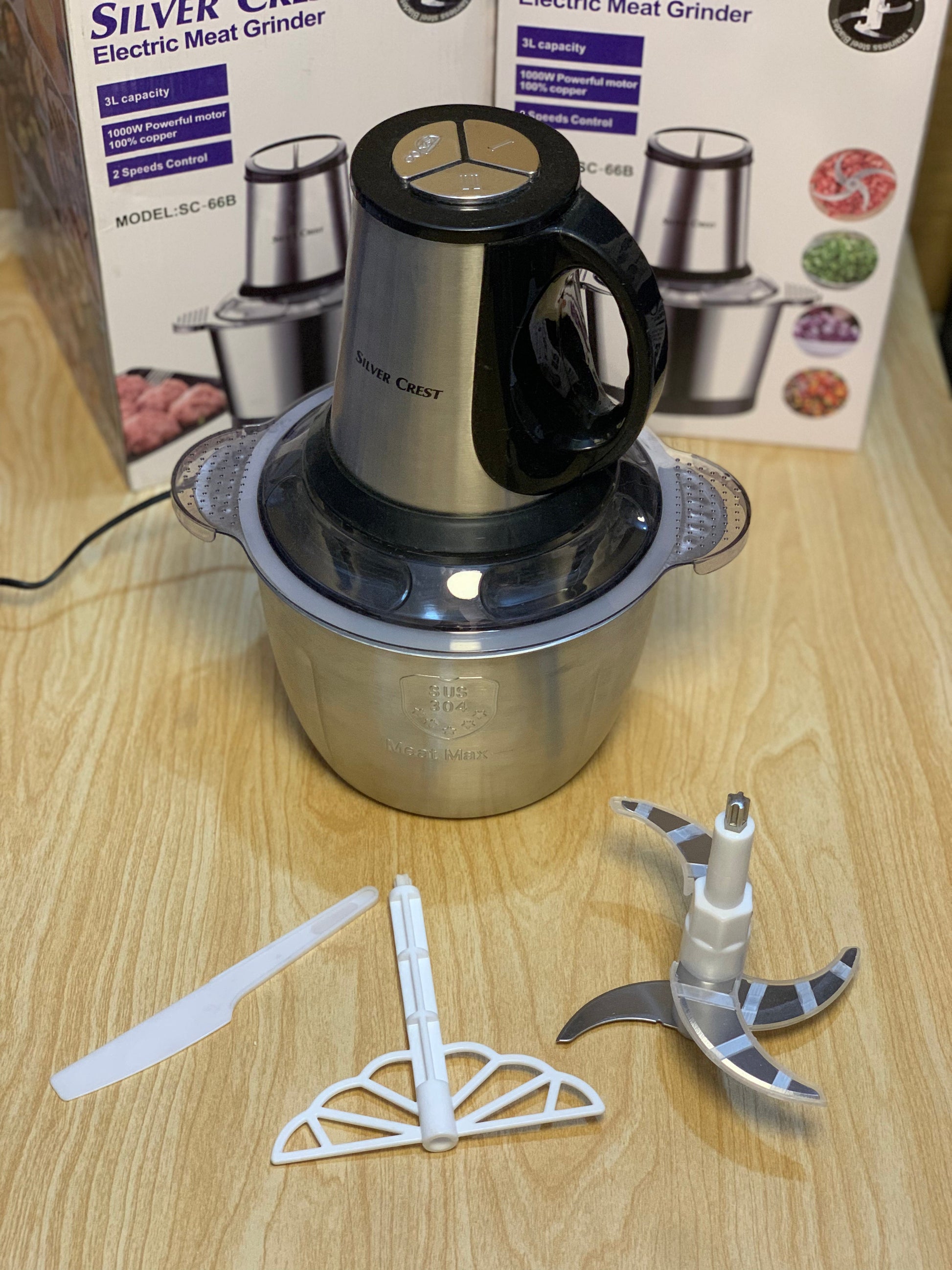 Efficiently chop and dice meat with the Silver Crest Chopper 3L. Equipped with a sharp blade, this kitchen appliance effortlessly cuts through tough meats, saving you time and effort. Perfect for meal prep or cooking large quantities, this chopper streamlines your culinary tasks.